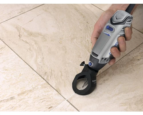 Verwijder met je Dremel multigereedschap en de freesset voor verwijderen van muur- & vloervoegen (568) probleemloos en nauwkeurig met de hand voegspecie. De snijhoek van 30 graden van de meegeleverde geleider zorgt voor krachtig en gecontroleerd snijden, zodat je gemakkelijk de voeg kunt volgen en verwijderen met een zeer klein risico om een tegel te breken of het oppervlak te beschadigen.