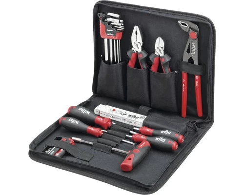 De 34-delige gereedschapset vormt de basisuitrusting voor de meest gangbare werkzaamheden van monteurs. Het volledig openklapbare gereedschapetui met ritssluiting en draaghandgreep en met insteekvakken voor het handgereedschap biedt voldoende ruimte en een overzichtelijk rangschikking. De voor hun bijzonder goede ergonomie onderscheiden schroevendraaiers SoftFinish® in diverse handgreepmaten zorgen voor comfortabel, moeiteloos schroeven. De stiftsleutelhouder ErgoStar, waarbij alle stiftsleutels comfortabel kunnen worden uitgenomen met een enkele draaibeweging, is een ander hoogtepunt van deze gereedschapset. Daarnaast is ook een krachtzijkniptang inbegrepen met openingsveer en DynamicJoint® technologie, een unieke scharnierconstructie voor een optimale overdracht van de handkracht. Een waterpomptang met Classic-handgreep, een bitset FlipSelector en vele andere gereedschappen ronden de uitrusting van de gereedschapset af.