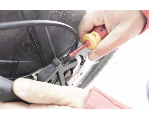Voor elektrische toepassingen onder krappe werkomstandigheden geven vakmensen de voorkeur aan korte, handzame schroevendraaiers. Reden waarom vaak de handgreep wordt ingekort of met niet-geïsoleerde schroevendraaiers wordt gewerkt – ten koste van de eigen veiligheid. Met de geïsoleerde korte schroevendraaier Stubby biedt Wiha de optimale oplossing voor dit probleem. Dankzij een totale lengte van slechts 105mm is deze perfect geschikt voor werkzaamheden op krappe locaties. Daarnaast is de korte schroevendraaier 100% compatibel met slimBits zodat deze gelijk een hele reeks schroefprofielen afdekt. Bij de speciaal voor elektrische toepassingen ontwikkelde Wiha slimTechnology is de isolatie in de schacht geïntegreerd om tot 33% slankere schachten mogelijk te maken. Zo kunnen ook diepliggende schroef- en veerelementen moeiteloos worden bereikt. De Stubby-handgreep en de slimBits zijn conform de internationale norm IEC 60900 aan een 100% controle onderworpen waardoor er veilig mee kan worden gewerkt aan onder spanning staande delen tot 1.000 V AC.