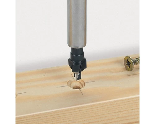 Verzinkboor voor schroeven met verzonken kop ø 5,5 – 6 mm. Boort en verzinkt in één keer en verhindert het ongewild uitscheuren van hout. De zeskant-schacht voor snelle gereedschapswissel in bithouders.